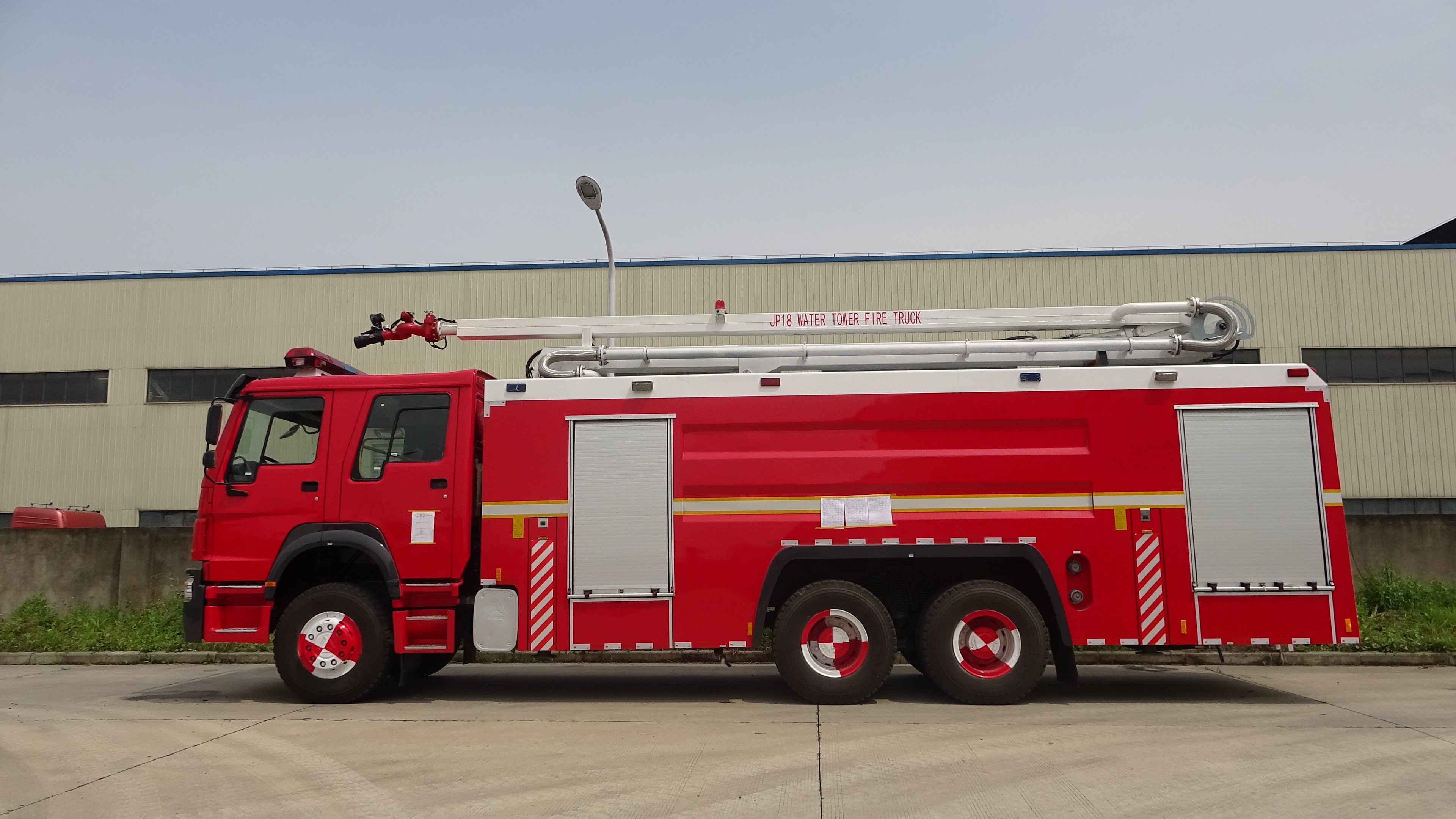 این خودرو از شاسی، بازوی اسپری به ارتفاع 18 متر، پمپ آتش نشانی، مانیتور آتش نشانی و جعبه تجهیزات تشکیل شده است.کامیون آتش نشانی برج آب 18M دارای مانور و قابلیت ترافیک قوی است، تمام اجزای اصلی کنترل الکترونیکی وارداتی هستند که دارای ویژگی های قابلیت اطمینان بالا، ساعات کار طولانی، تعمیر و نگهداری ساده، اثر خوب و غیره هستند.