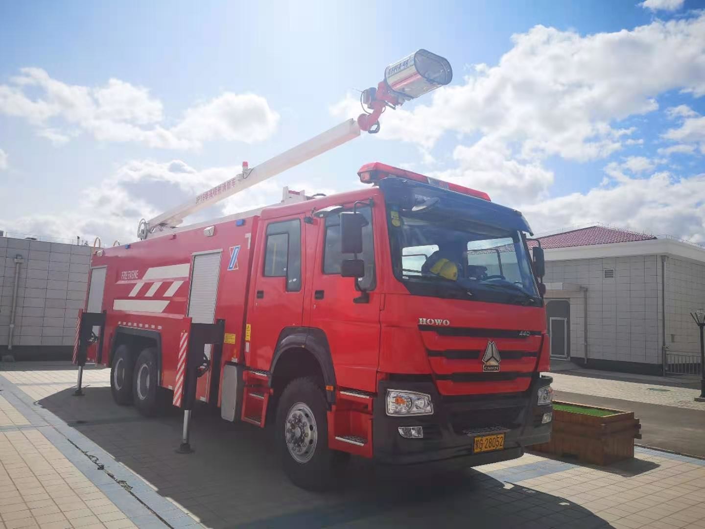 کامیون آتش نشانی برج آب تلسکوپی 18M 10 چرخ برند HOWO با قدرت 460 اسب بخار با 10 تن آب و فوم 2 تن
